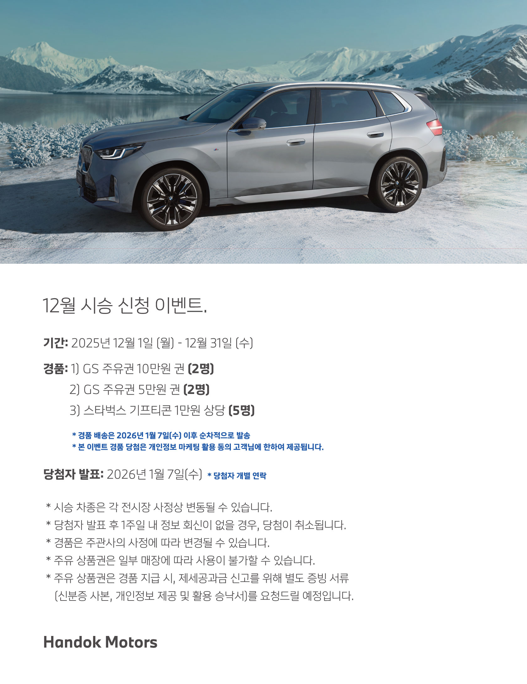 마케팅 활용에 동의하시면, BMW 코리아와 딜러사에서 제공하는 BMW 관련 소식, 이벤트 안내, 혜택 알림 등 다양한 정보를 안내 받으실 수 있습니다.